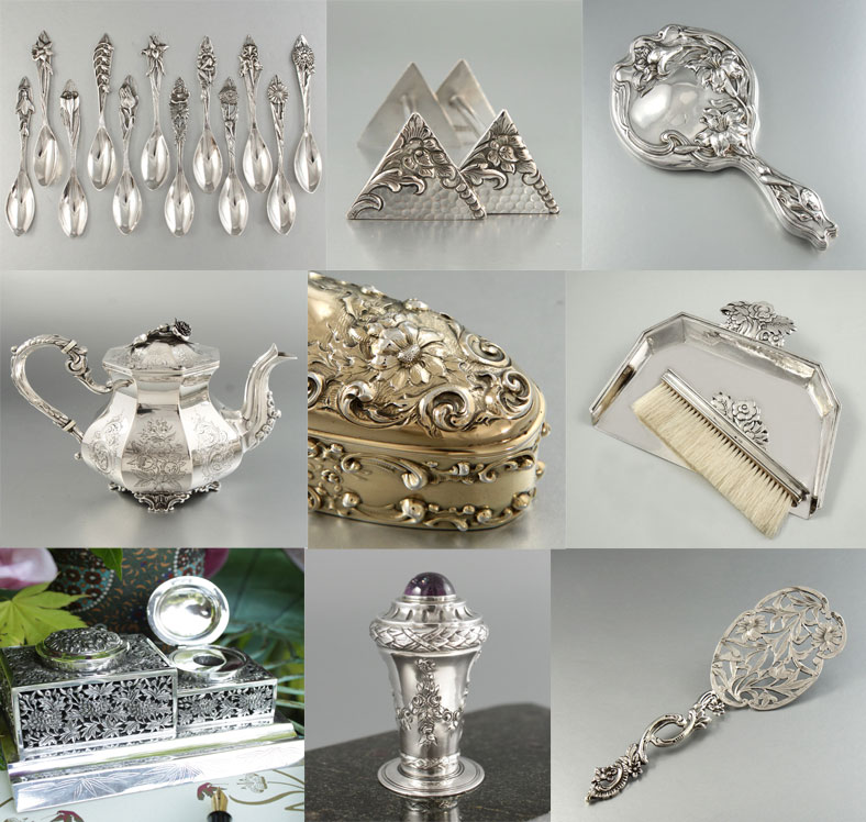 Wer jetzt für eine besondere Gelegenheit an ein Blumengeschenk sucht, kann etwas ganz Besonders schenken: Eine Kombination aus Beständigem und Vergänglichem, aus Kunst und Natur, eine Allianz aus Silber und Blumen. Und falls es weder eine Vase, noch frische Blumen sein sollen: Silber liebt Blumen und so ließen sie die Silberschmiede auf vielerlei ihrer Objekte „erblühen" - Rahmen, Schalen, Kannen, Besteck, Toilettenaccessoires bis hin zur Zigarettendose. Vielleicht stöbern Sie nach „Blumen" auch einmal in unserem Warenangebot. Sie werden sehen bei Silbersuite "blüht" so einiges - vieles auch perfekt für den 10. Mai - da ist Muttertag!