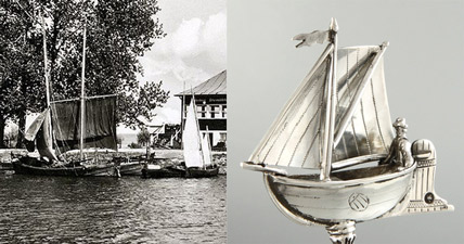 Der „Schiffs-Löffel" aus Amsterdam 1905: Josef wurde im Allgäu auf einem Bauernhof geboren und war ein kränklicher Junge. Seine Leidenschaft für das Meer, das er nur aus Büchern kannte, war den Eltern ein Rätsel, den Geschwistern suspekt und für ihn alles andere als erklärbar. Als sich sein Gesundheitszustand verschlechterte und die Ärzte zu Seeluft rieten, schicken ihn seine Eltern zu einer entfernten Verwandten ins holländische Bergen aan Zee, wo Sie mit ihrem holländischen Mann eine kleine Pension betrieb. Meer und Strand direkt vor der Haustür verbrachte Josef 8 Wochen wie im Paradies. Das Schönste für ihn war , wenn Onkel Jan ihn zum Segeln mitnahm. Das war der Himmel auf Erden. Um so schmerzvoller war der Abschied. Als Erinnerung an seine – wie er später sagte, schönste Zeit seiner Jugend – schenkte Jan ihm diesen kostbaren Andenkenlöffel, mit einem Boot ganz ähnlich der Jolle, auf der er segeln gelernt hatte und mit dem Stadtwappen von Amsterdam, die schöne Stadt, die er während seines Aufenthaltes besuchen durfte . Übrigens zog Josef später nach Hamburg, wurde ein angesehener Geschäftsmann und ein leidenschaftlicher Segler. Die Leidenschaft für das Meer, das Segeln und sehr viel später den Löffel vererbte er an seinen Sohn.