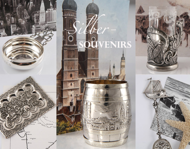 So mancher, der jetzt von einer Reise aus fernem oder interessantem „Lande" zurückkehrt, hat ein Mitbringsel für die Daheimgeblieben oder ein Souvenir für sich selbst im Gepäck. Das ist heute so und war auch in früheren Zeiten nicht anders. Gerne darf es etwas Landestypisches sein oder ein ganz persönliches Erinnerungsstück an unvergessliche Tage und Erlebnisse – und manchmal war und ist so ein Erinnerungsstück auch aus Silber. Nicht oft haben wir als Händler das Glück, die originale Herkunft – wann und wo erworben oder bekommen – eines alten oder antiken Silbergegenstandes zu erfahren. Meist gehen diese Dinge durch viele Hände, werden verkauft, gekauft und wieder verkauft und stehen dann „anonym" in Antiquitätengeschäften oder auf Auktionen. Manche Silberstücke jedoch bleiben von Anfang an im Familienbesitz und die zweite oder dritte Generation kennt noch das Wann, Wo und Wie ihrer Herkunft. Wir möchten Ihnen fünf sehr persönliche Silberstücke vorstellen, deren Geschichten eines gemeinsam haben: Sie waren alle Souvenirs.