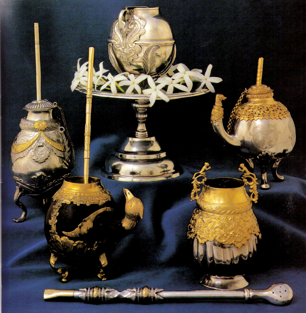 Quellen- und Bildnachweis: Einige Informationen, sowie das Bild mit den Mategefäßen, der argentinische Reiter und das Gemäldebild stammen aus dem Begleitkatalog der Ausstellung " Silberschätze aus Südamerika". Antiquarisch zu bestellen zum Beispiel bei Amazon.