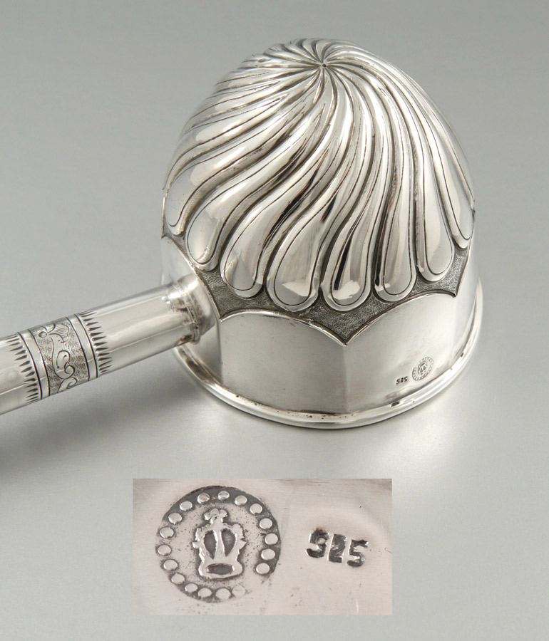 Manche Objekte bekamen nachträglich, nach einer entsprechenden Silberprobe, den Stempel für Silber 925, den Sterlingfeinhalt.