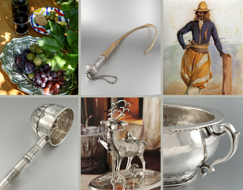 Ganz anders, die südamerikanischen Silberobjekte aus dem 18. und 19. Jahrhundert, die in Stil und Handwerkskunst ganz den Traditionen des Landes verbunden sind und die unverwechselbare Identität des neuen Kontinentes widerspiegeln.