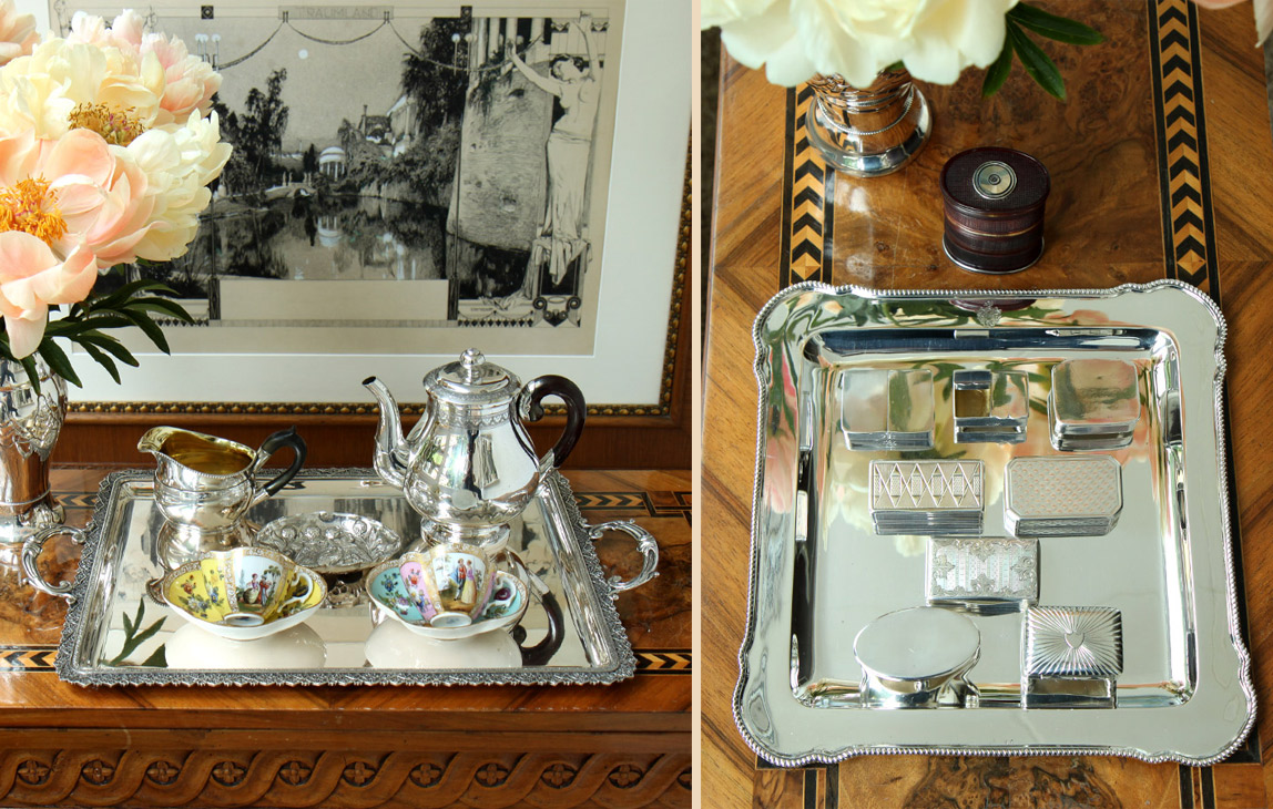 Wie sehr ein (auch zwei oder drei) Silbertablett das Zuhause bereichern und veredeln kann, hoffe ich hier anhand dieser Beispiele ein bisschen näher gebracht zu haben. Sie sind nützliche Helfer und imposante Showstücke zugleich. Ich persönlich liebe jedes meiner Silbertabletts, eine Investition übrigens, die ich noch nie bereut habe!