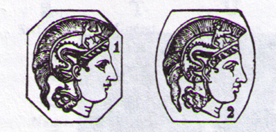 Die gezeigten Marken tragen die Zahlen 1 vor der Stirn, bez. 2 unter dem Kinn für die Hauptstadt Paris als Herkunftsort. Stammen die Silberobjekte aus den Departements sind die Zahlen umgekehrt gestempelt, also die 1 unter dem Kinn, die 2 vor der Stirn.