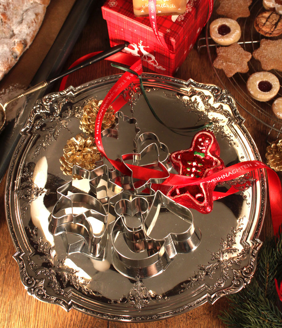 Es gibt viele Möglichkeiten Kulinarisches und mehr, sei es nun selbstgemacht oder liebevoll ausgesucht, mit Silber zu einem unvergesslichen Geschenk zu kombinieren. Die Marmelade zu dem seltenen Marmeladenglas mit Silbermontierung aus unserer Rubrik“ Weihnachtsgeschenke“, der Weihnachtslikör in einer edlen Karaffe, der Champagner im Silber- Sektkühler. Oder wie wäre es mit einem selbstverfassten Gedicht oder einem Versprechen, „verpackt“ in der russischen Herzdose aus Filigransilber oder dem Reisegutschein im Silberrahmen für das spätere Erinnerungsfoto. Vielleicht stöbern Sie unter diesem Gesichtspunkt einmal durch die Silbersuite und finden Ihr ganz besonderes, persönliches Geschenk. Wir wünschen Ihnen dazu viel Vergnügen und allen die jetzt mal wieder Lust aufs Selberbacken bekommen haben, sei versichert: Es gibt nichts Schöneres als der Duft nach Zimt, Anis und gemahlenen Mandeln der durchs Haus zieht, der Stolz, das Gelungene Schicht für Schicht in Dosen – oder Silber zu packen und die Komplimente von Familie und Freunden. Und nicht zuletzt –nichts schmeckt so gut, wie das aus der eigenen Backstube! In diesem Sinne wünschen wir Ihnen eine besinnliche und kreative Adventszeit.