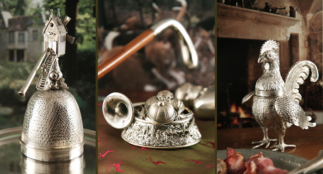 Unterseite vergoldet sind, nach Vorbild der Trinkspiele des 17. und