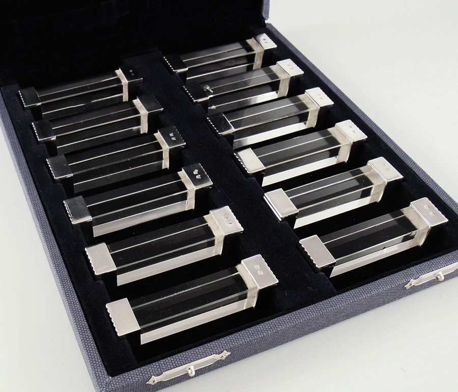 12 Messerbänke Silber mit Bergkristall