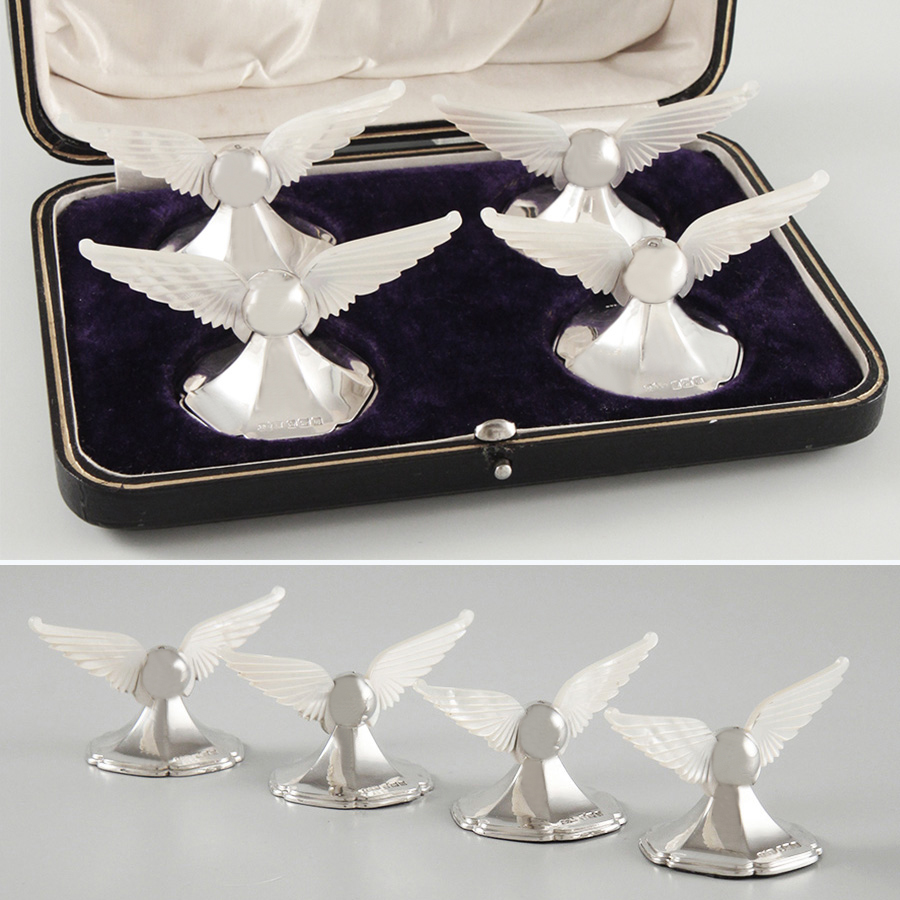 Silber 925 mit geschnitzten Permluttflügeln, im Originaletui
