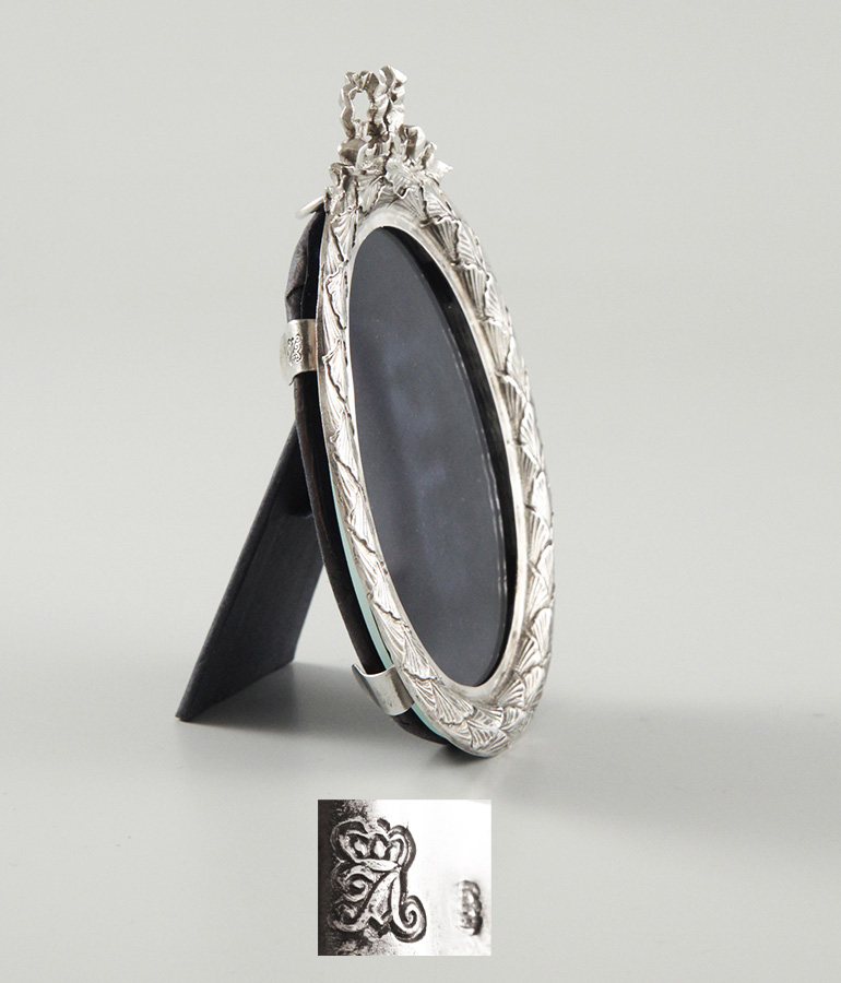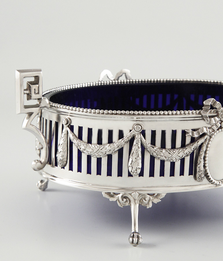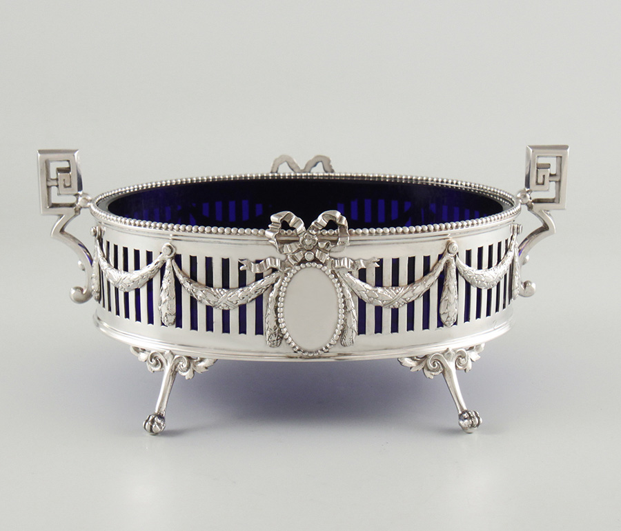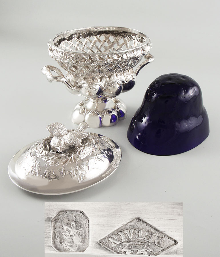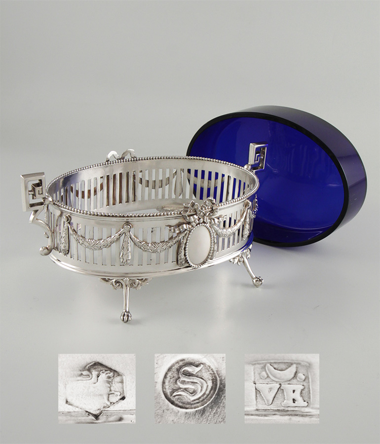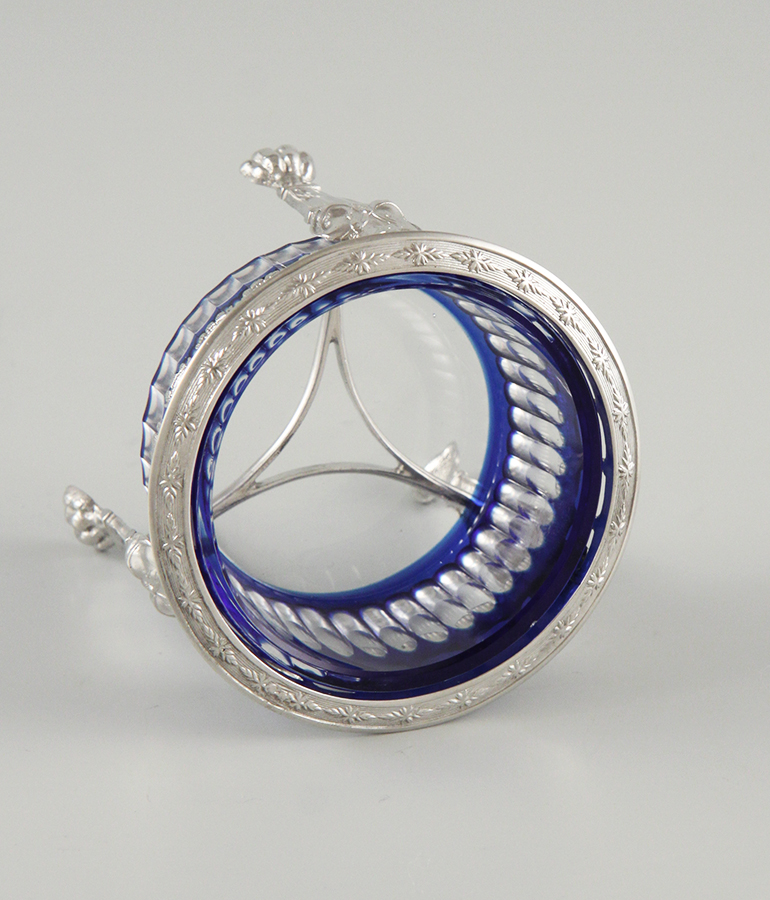 Gitterwerk, blauer Glaseinsatz, Silber 950, MZ: Alphonse Debain 1883-1911