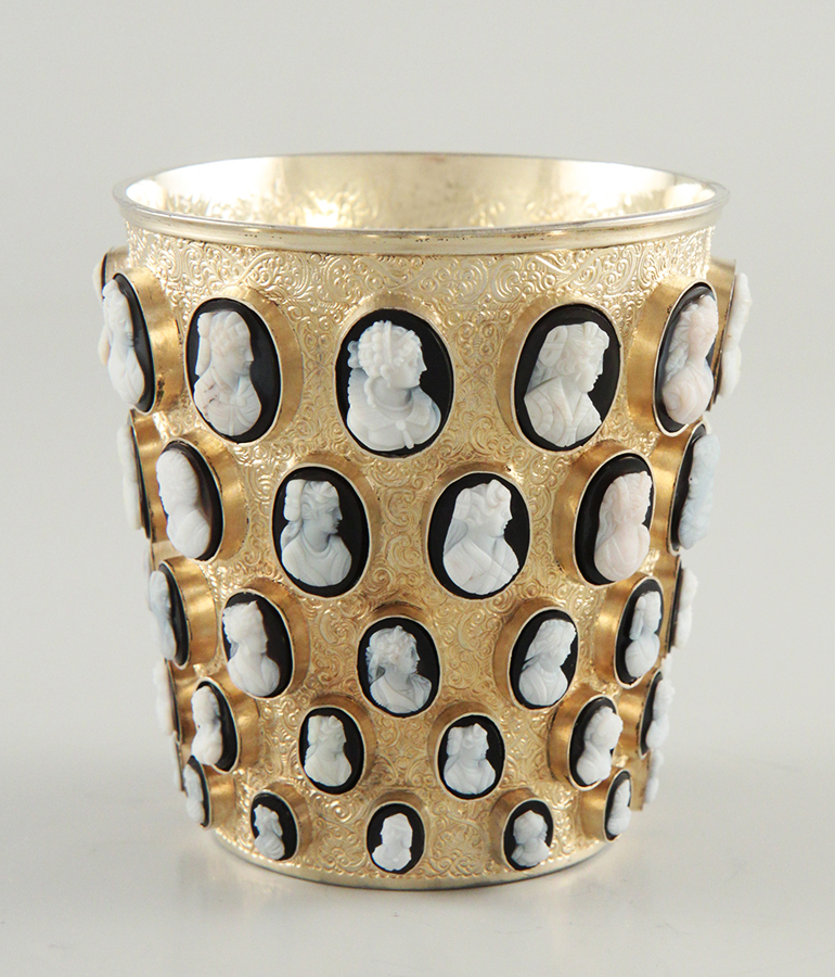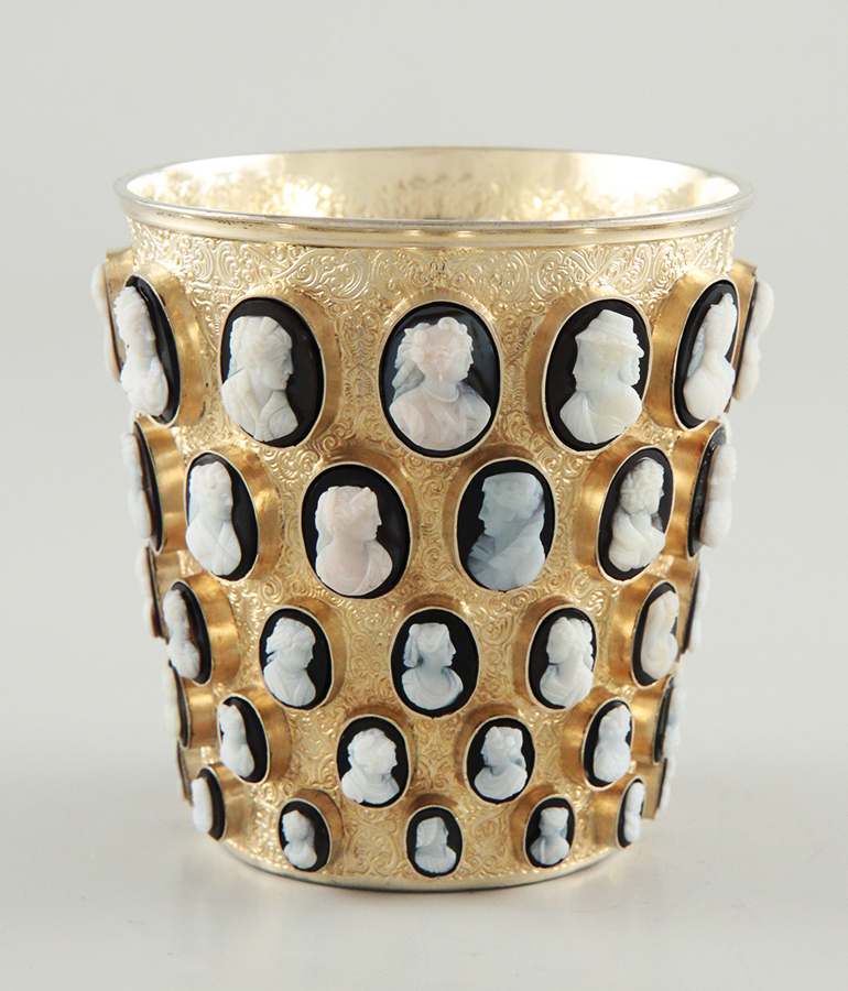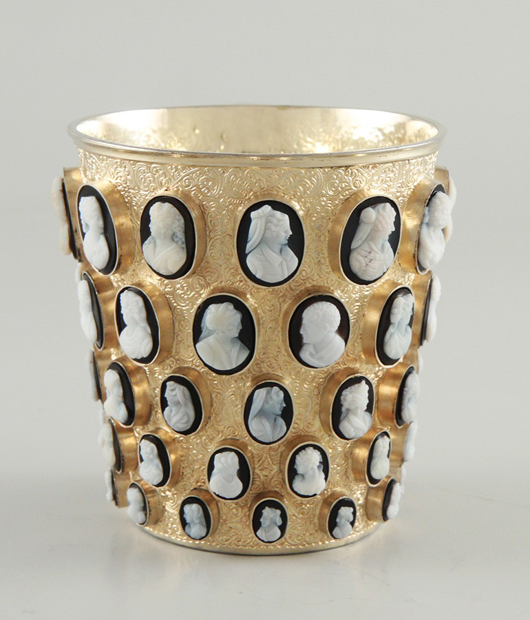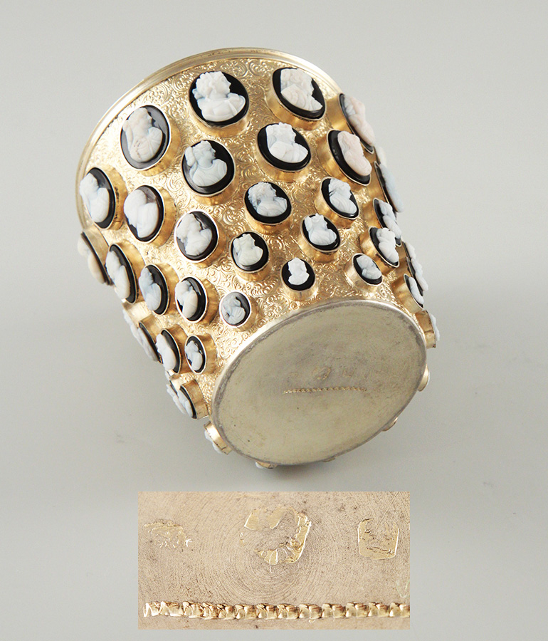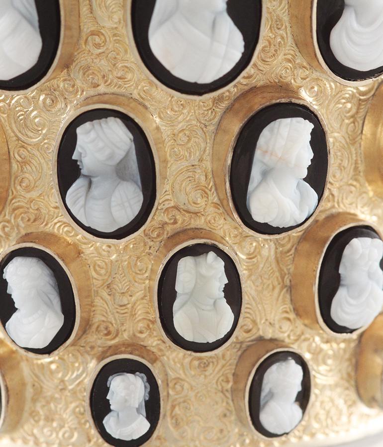 verziert mit 48 Kameen aus Lagensteinen (Achat/Onyx)