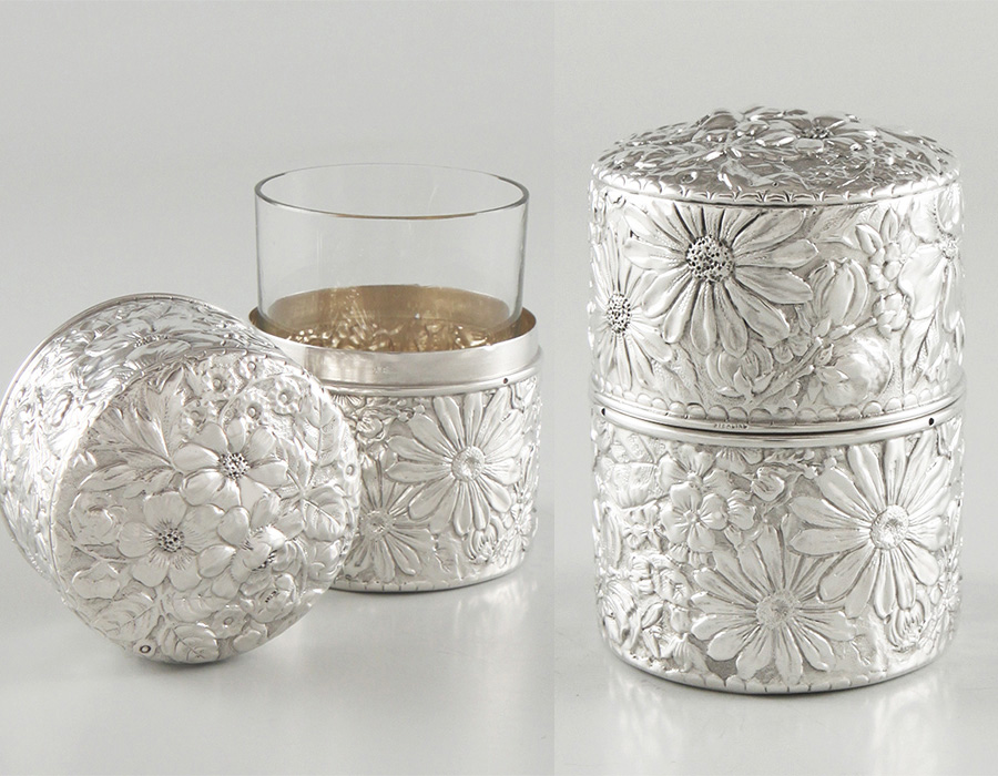 Glas geschützt in der Silberdose, Silber 925 teilvergoldet