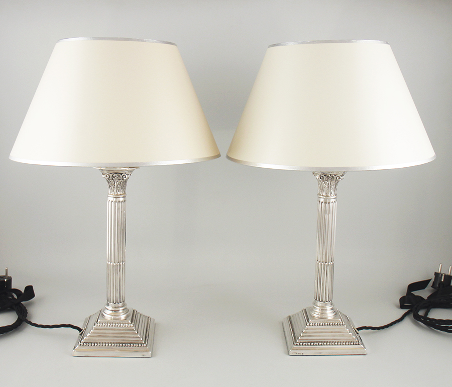 maßgefertigte Stoffschirme mit Silberbandeinfassung