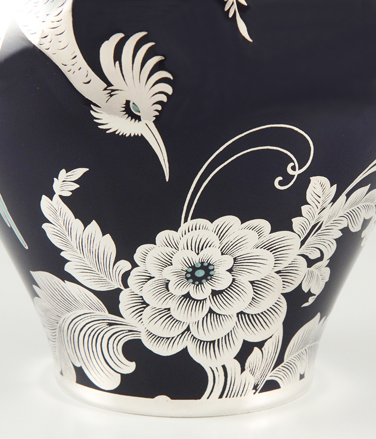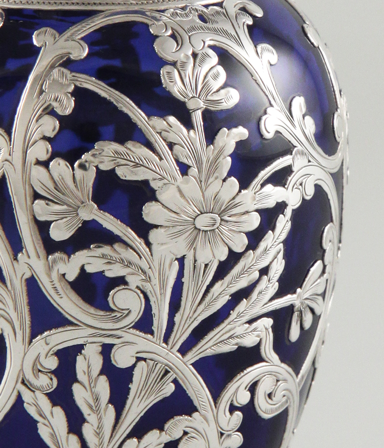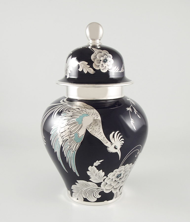 Große Deckelvase mit Silber-Overlay