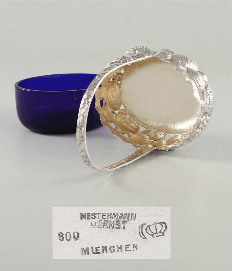 Silber 800, blaues Originalglas, Hanauer Pseudomarken, dokumentiert,