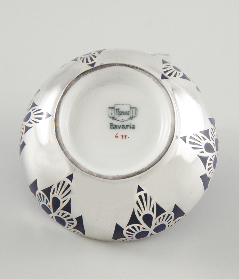 Porzellan, blauer Scherben, Silberoverlay 999/1000