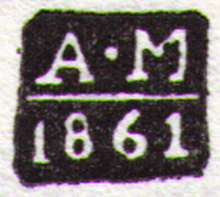 Bis 1896 erfolgte die Punzierung mit der Stadtmarke, den Initialen des Beschaumeisters, der Jahreszahl und dem Silberfeingehalt. In Russland wurde der Silberfeingehalt bis 1917 in Zolotniki angegeben, 1 Zolotniki entspricht dem metrischen 10,4/1000 Silberfeingehalt.