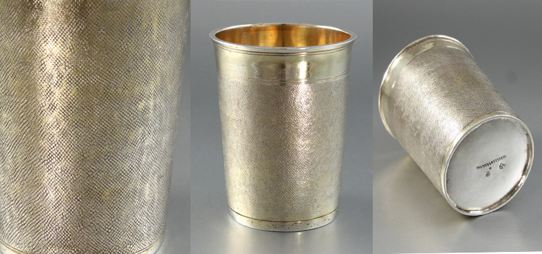 In der Regel, aber durchaus nicht immer, wurden diese Becher später vergoldet, mit der in dieser Zeit angewendeten Technik der Feuervergoldung (Vermeil).